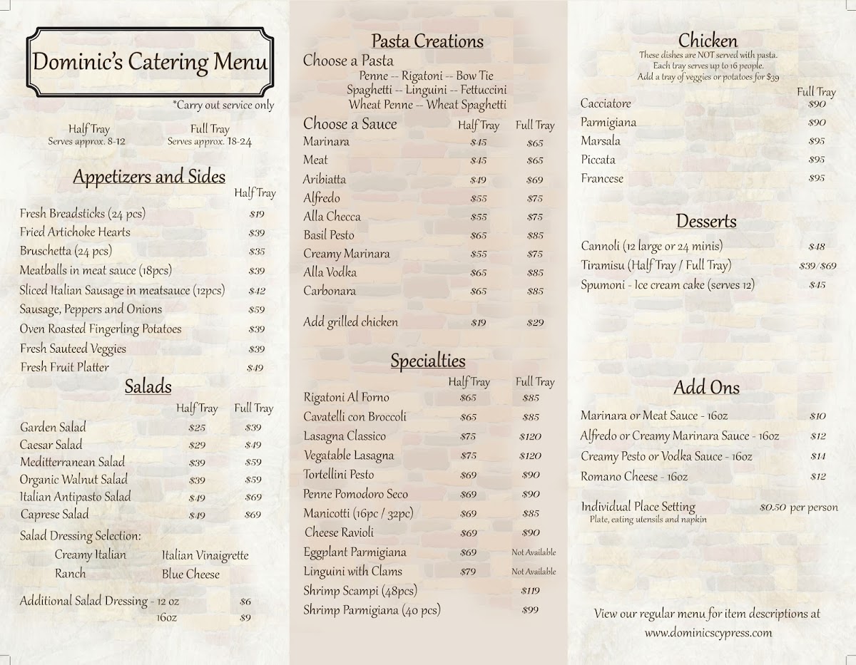 Dominic's Ristorante Italiano Menu